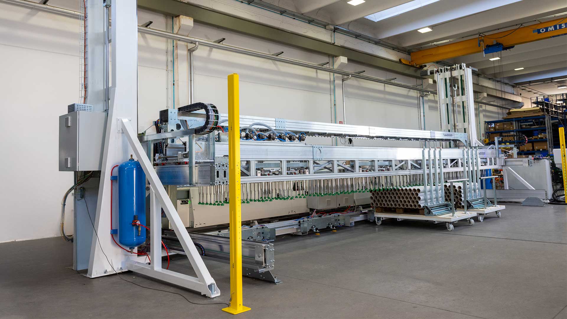 Pallettizzatore automatico progettato e realizzato per offrire un Sistema completo di pallettizzazione ed imballaggio ad alta produttività completamente automatico.